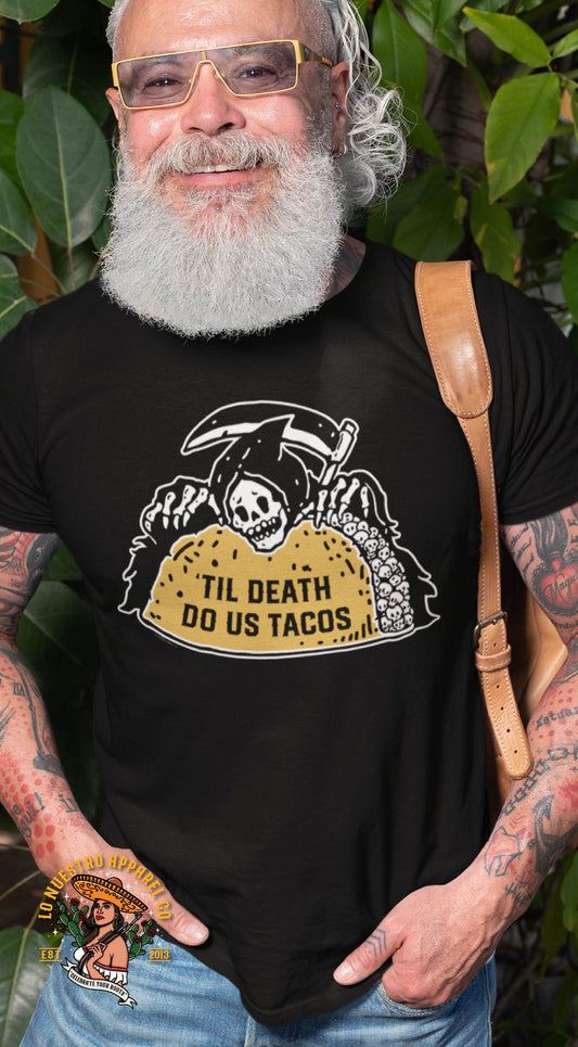 ‘Til Death Do Us Tacos Grim Reaper T-Shirt - Funny Mexican Food Tee