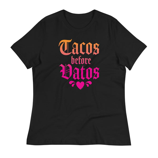 Tacos Before Vatos Women’s T-Shirt – Funny Chicana Graphic Tee